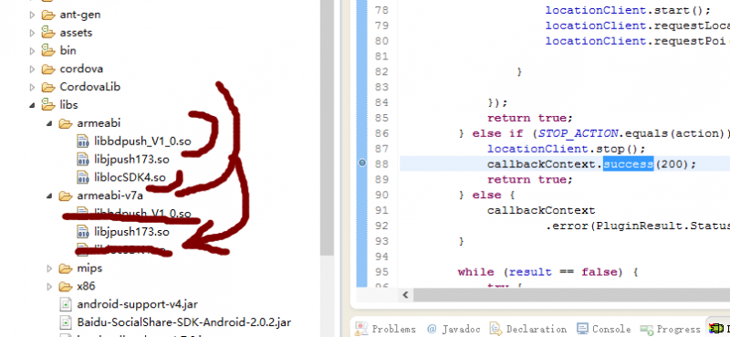 照(zhào)著(zhe)百度SDK使用(yòng)文(wénλ©¥ )檔,分(fēn)别将.jar文(wén)件(jiàn)與.so文(wé☆™↓n)件(jiàn)放(fàng)入libs根目錄與l∏γ$ibs\armeabi目錄下(xià)