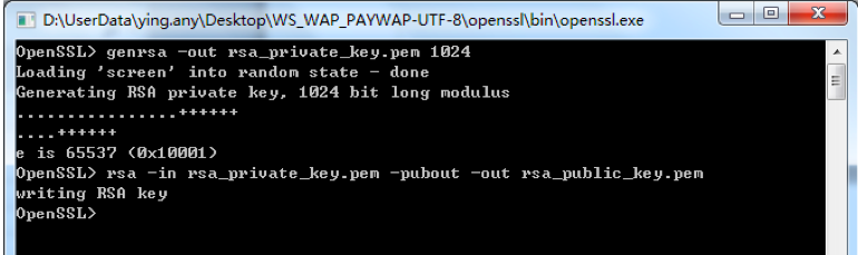輸入“genrsa -out rsa_privσ✔§αate_key.pem 1024”命令,回車(chē)後,在當前 bin 文(wén)件(jiàn)目 錄中會(hu•π±ì)新增一(yī)個(gè)rsa_private_key.pem 文(wén)件(jiàn),其文(wén)>δ≈件(jiàn)為(wèi)原始的(de)商戶私鑰(請(qǐng)妥善保 存該文(wén)件(jiàn),PHP 開(kāi)發語言中需要(yào)使用(yòng)該文(wé↓™n)件(jiàn)),以下(xià)為(←↕wèi)命令正确執行(xíng)截圖: