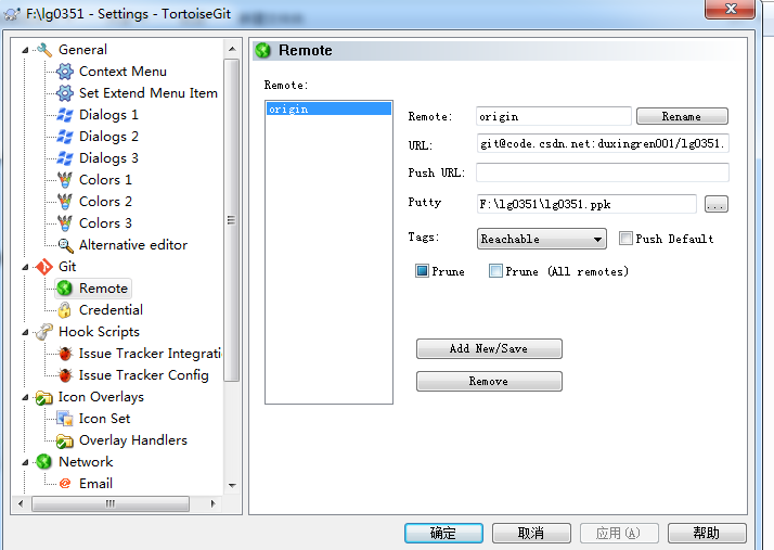 遠(yuǎn)端是(shì)自(zì)動生(shēng)成的♣♣$(de),URL就(jiù)是(shì)複制(zhìΩ© )的(de)git@code.csdn.net∞♦☆:duxingren001/lg0351.git &nbs§∑↓δp; putty密鑰是(shì)本地•±Ω(dì)的(de)私鑰()