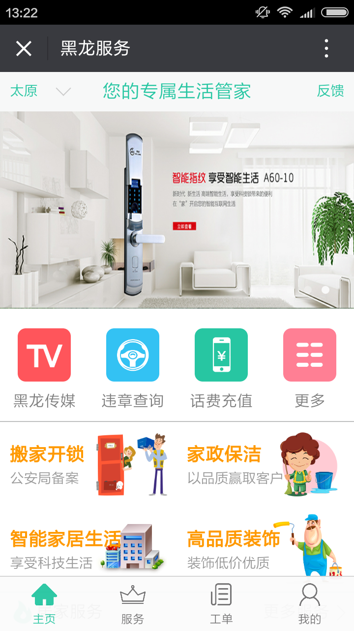 該APP是(shì)黑(hēi)®≈∏λ龍公司,針對(duì)自(zì)己目前業↓÷©(yè)務(開(kāi)鎖,家(jiā)♥σ政,裝修等業(yè)務)在線上(shàng)開(kā✘×™×i)辟平台。實現(xiàn)O2O而開(kāi)♦>←←發的(de)APP。