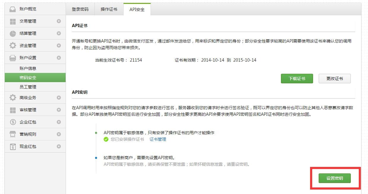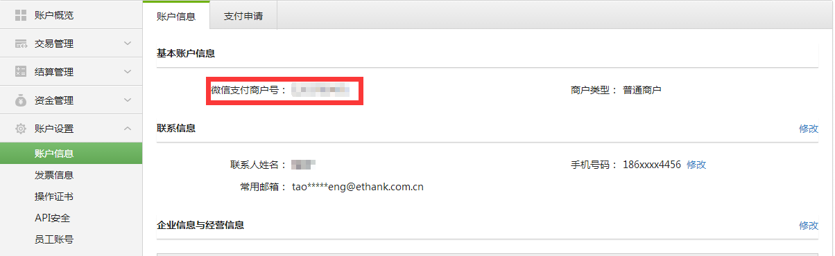 進入商家(jiā)平台,點擊賬戶設置->賬戶信息->基本賬戶信息±∞,記錄下(xià)微(wēi)信支付商戶号MCHID,如(rú)下(xi£≠₩à)圖
