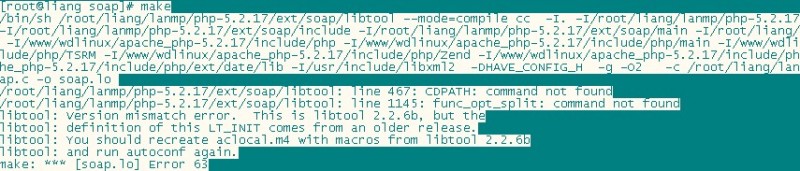 首先進入 soap模塊的(de)安裝文(wén)件(εσjiàn) cd /root/liang/lan±£≈εmp/php-5.2.17/ext/soap