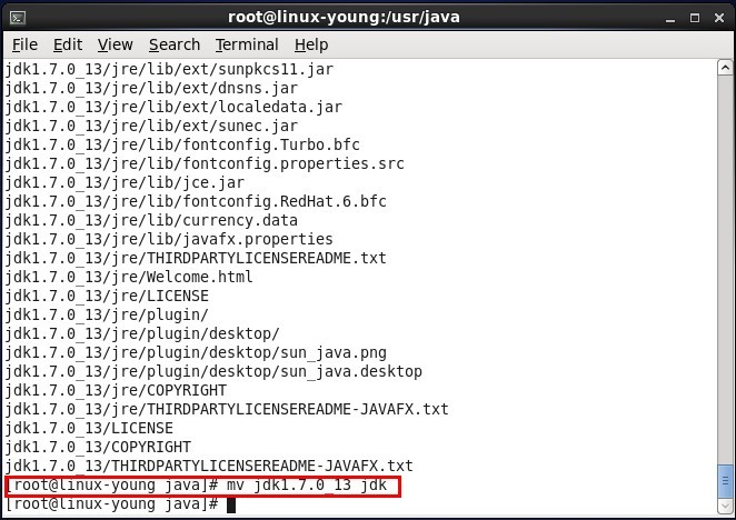 為(wèi)了(le)以後設置方便,我們該生(★±₹shēng)成的(de)目錄jdk1.7.0_13✘♣改名為(wèi)jdk,輸入如(rú)下(xε↕§σià)命令: