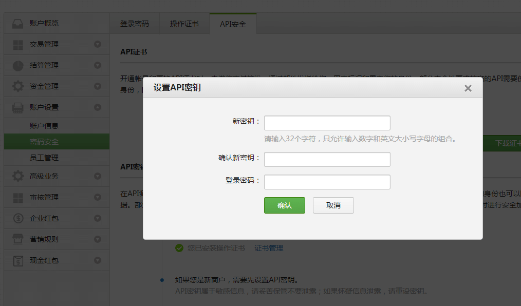 點擊賬戶信息-&g₹×→×t;API安全->API密匙->設置密β↕π匙,輸入新的(de)密匙KEY(注意首次設置一(yī)定要(yào)重置下(xià)密匙),并記錄下(xià)密匙,如(rú)下(xià)圖