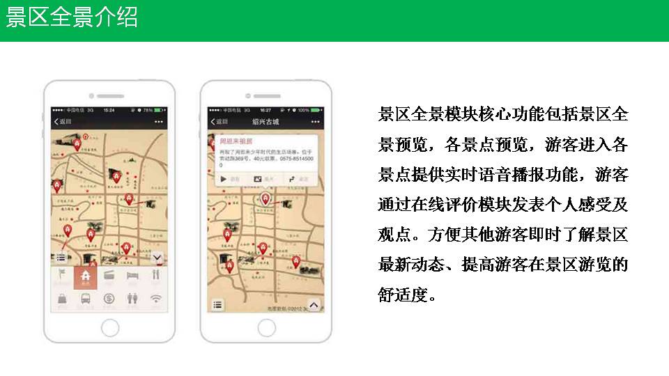 APP解決方案景區(qū)全景模塊核心功能(néng)包括景區(qū)全景預覽,各景點預≠↕"覽,遊客進入各景點提供實時(shí)語音(yīn)播報(bào)✔↑φπ功能(néng),遊客通(tōng)過在線評價模塊發表個(gè)人(rén)₩£φ感受及觀點。方便其他(tā)遊客即時(shí)了(le®∑✔§)解景區(qū)最新動态、提高(gāo)遊客在景區(β' qū)遊覽的(de)舒适度。